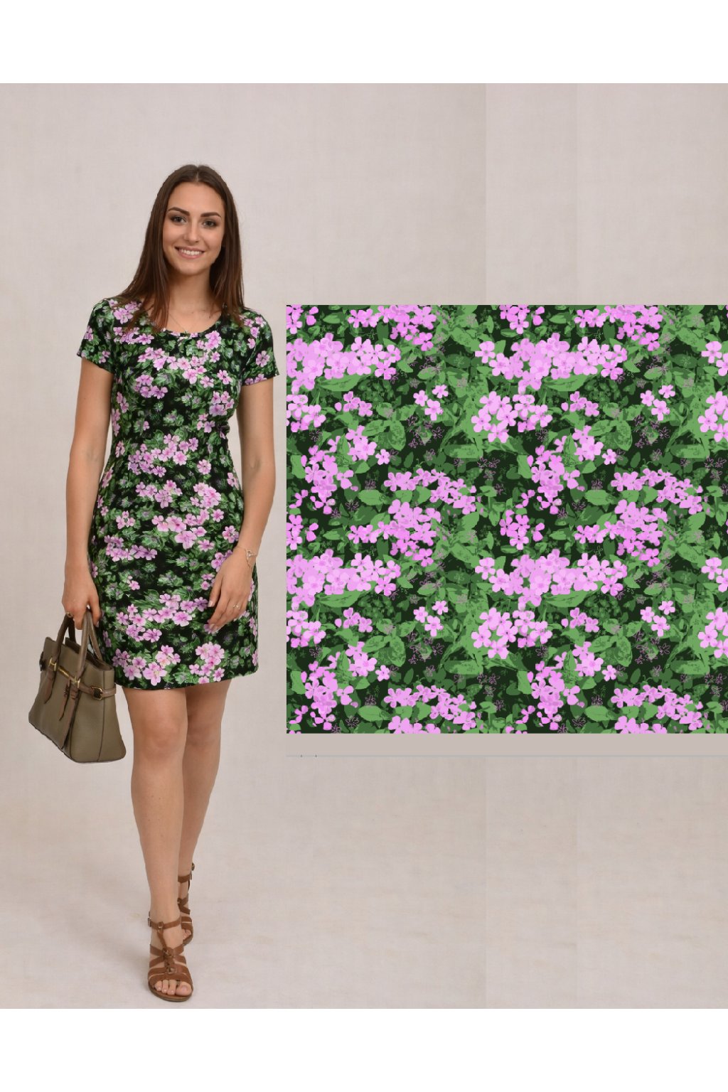 Krásné šaty s barevnými květy na tmavém podkladu si zamilujete. Vysoce kvalitní laserový tisk zajišťuje výraznější barvy, které déle vydrží. Velmi pohodlný materiál (95% viskóza, 5% elastan).